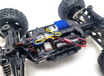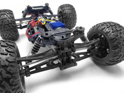 Ce buggy tout terrain 1/10 électrique 4x4 prêt à rouler se caractérise par ses nombreux équipements de qualité pour une fiabilité et des performances optimales. Son robuste châssis, son puissant moteur type 550, sa transmission entièrement sur roulements à billes avec trois différentiels à pignons et cardan central en acier traité, ses suspensions avec amortisseurs hydrauliques et ses pneus surdimensionnés lui permettent de se jouer à grande vitesse des pièges de terrain. Le récepteur radio et la variateur waterproof* permettent au Pirate Monster MX de supporter les projections d’eau ou de neige. La carrosserie en polycarbonate, réplique de celle d’un buggy de rally-raid, est peinte et décorée. Le pilotage est à la fois vif et précis grâce à un émetteur type volant/gâchette ergonomique 2,4GHz.